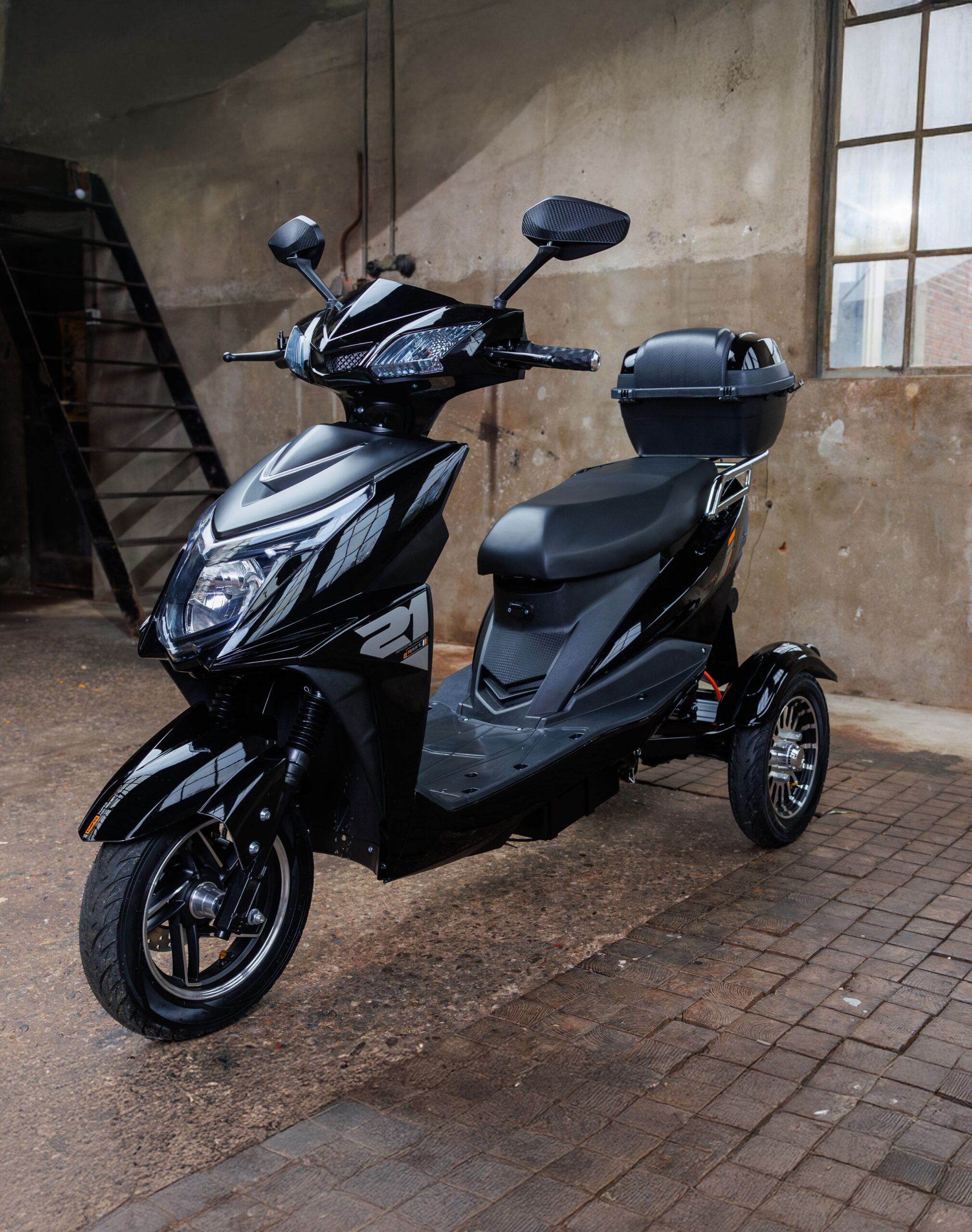 Dit Bravo E  is een stoere, luxe en comfortabele elektrische driewielscooter met een moderne uitstraling en een sportief randje. De sterke elektromotor maakt van deze scooter een stabiel en veilig vervoersmiddel. Met drie snelheidsstanden en een achteruit pas je je overal in het verkeer aan.