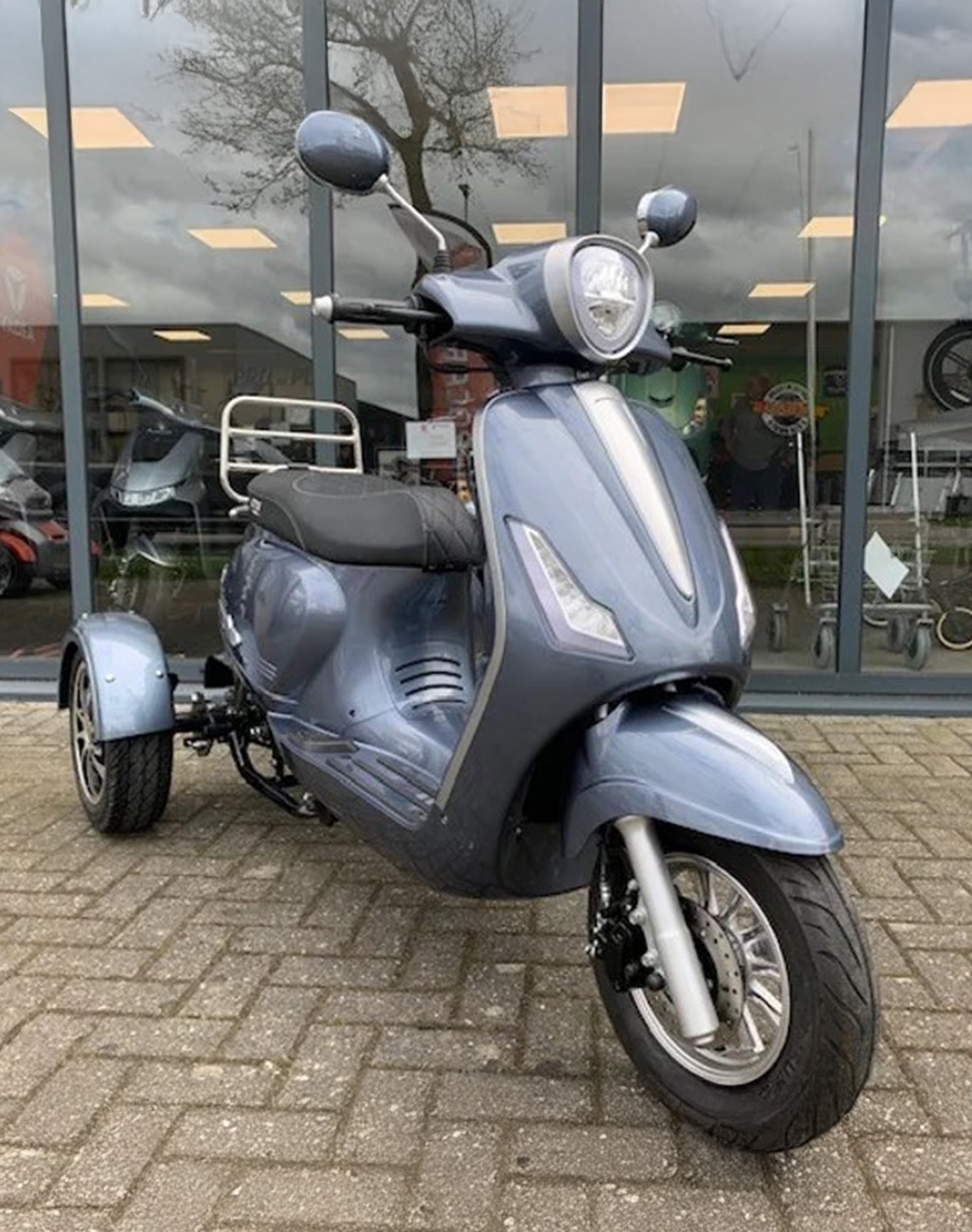 Het model lijkt erg op de Vespa LX, één van de meest populaire modellen in Nederland. De stijlvolle afwerking van de scooter en de charmante vormen maken het een tijdloze driewielscooter waar je op gezien mag worden!